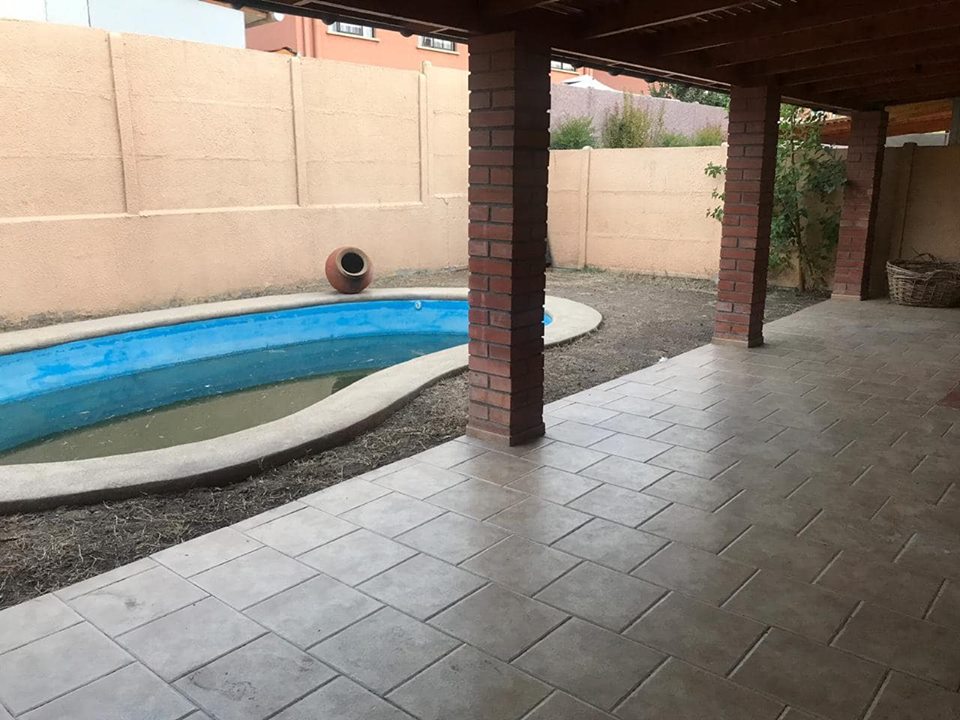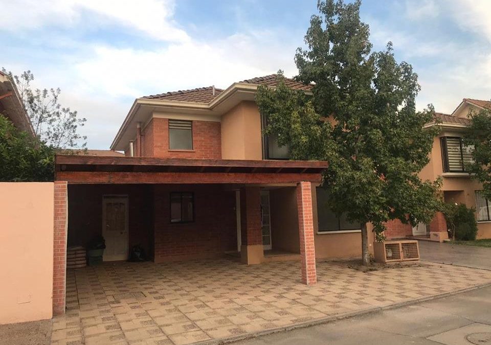 Se arrienda cómoda casa en condominio ubicado en ciudad satélite de Maipú, Hall de distribución, 3 dormitorios, uno en suite, 3 baños, con sala de estar o cuarto dormitorio, living comedor amplios, cocina equipada y amoblada, logía, amplia sala multiuso, cobertizo con estacionamiento para dos vehículos además de estacionamiento para visitas, amplia terraza y piscina, seguridad las 24 hrs. Arriendo incluye gastos comunes… (casa se entrega en óptimas condiciones, recién pintada y con pasto.